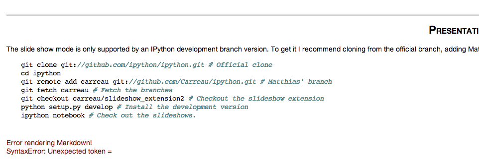 Error rendering Markdown! SyntaxError: Unexpected token = (slideshow mode?) #1